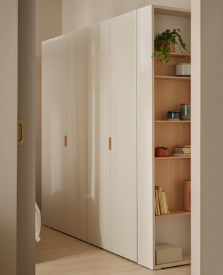4-дверна шафа, частина колекції 4 You Fresh, була розроблена, щоб зробити організацію вашого гардеробу максимально легкою. Завдяки своїй функціональності він ідеально вписується в інтер’єр будь-якої спальні, відповідаючи вашим потребам, які змінюються з роками. Відкидні двері забезпечують доступ до всього вмісту гардеробу, полегшуючи кожен напружений ранок. Додавши бічну полицю, ви отримаєте ще більше місця для зберігання.